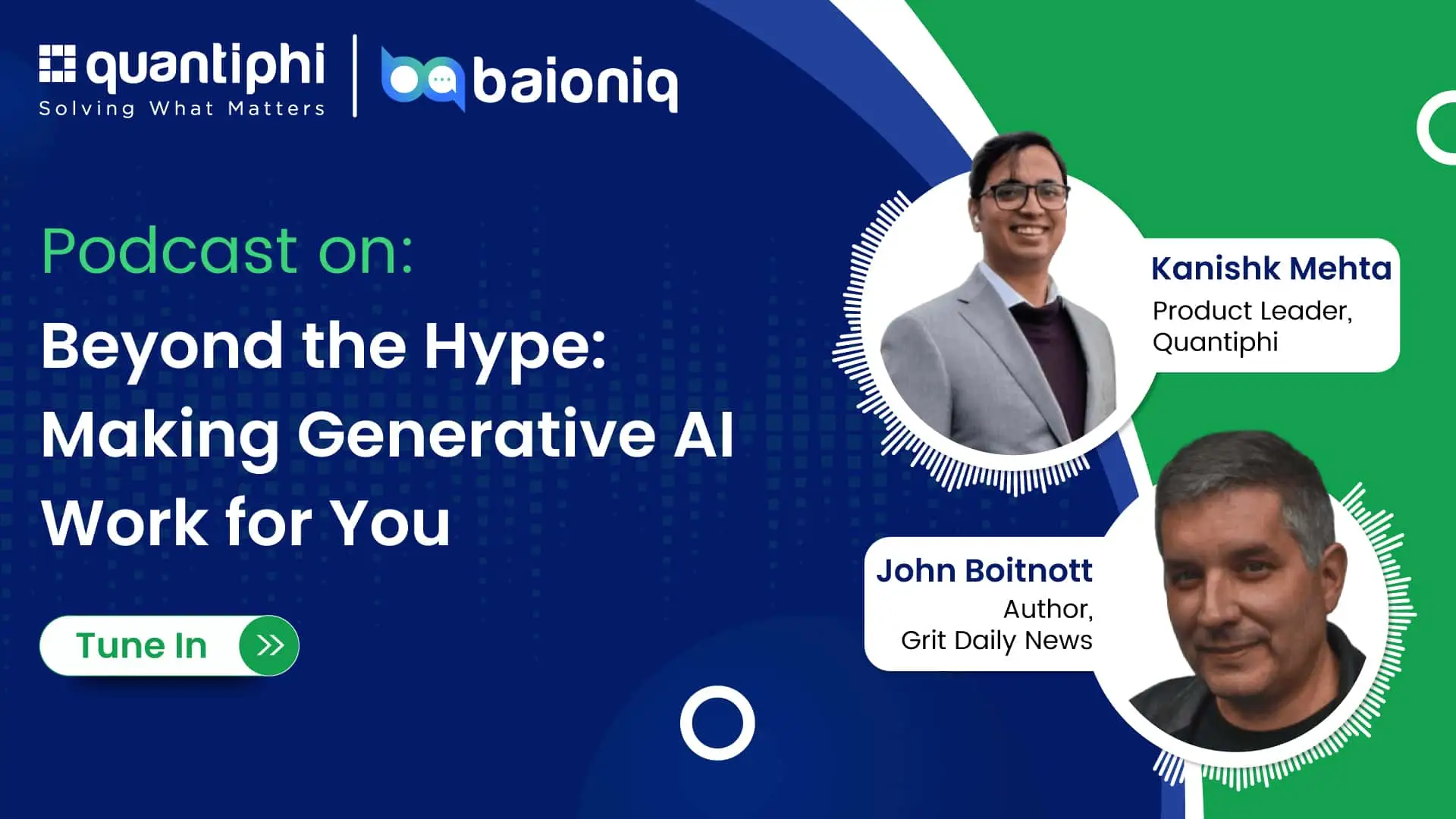 Tired of the hype surrounding generative AI? Join Kanishk Mehta, a seasoned product leader from Quantiphi, as he demystifies GenAI and reveals how baioniq can supercharge your knowledge workers' productivity in a recorded podcast.